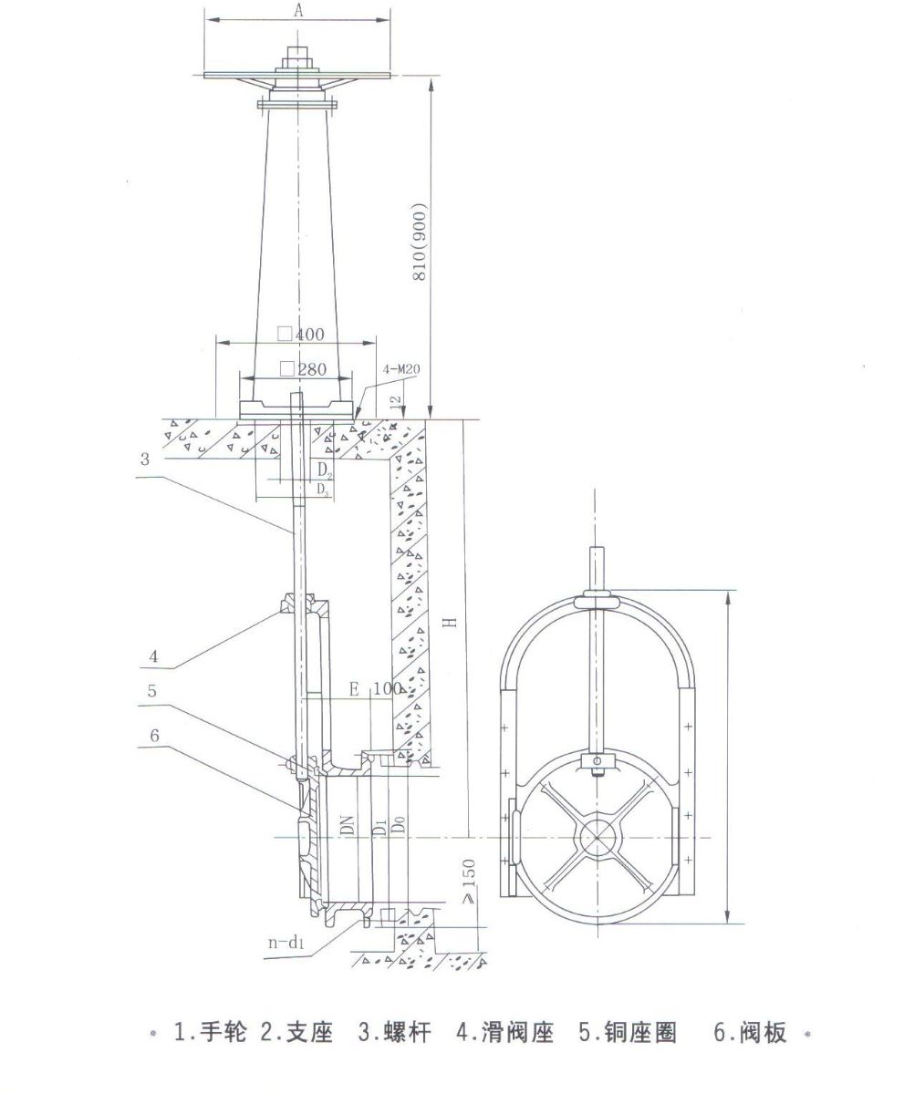 2、包含手輪啟閉裝置,若用戶需改用手電兩用啟閉機(jī)請(qǐng)參見(jiàn)相關(guān)樣本,并注明。
